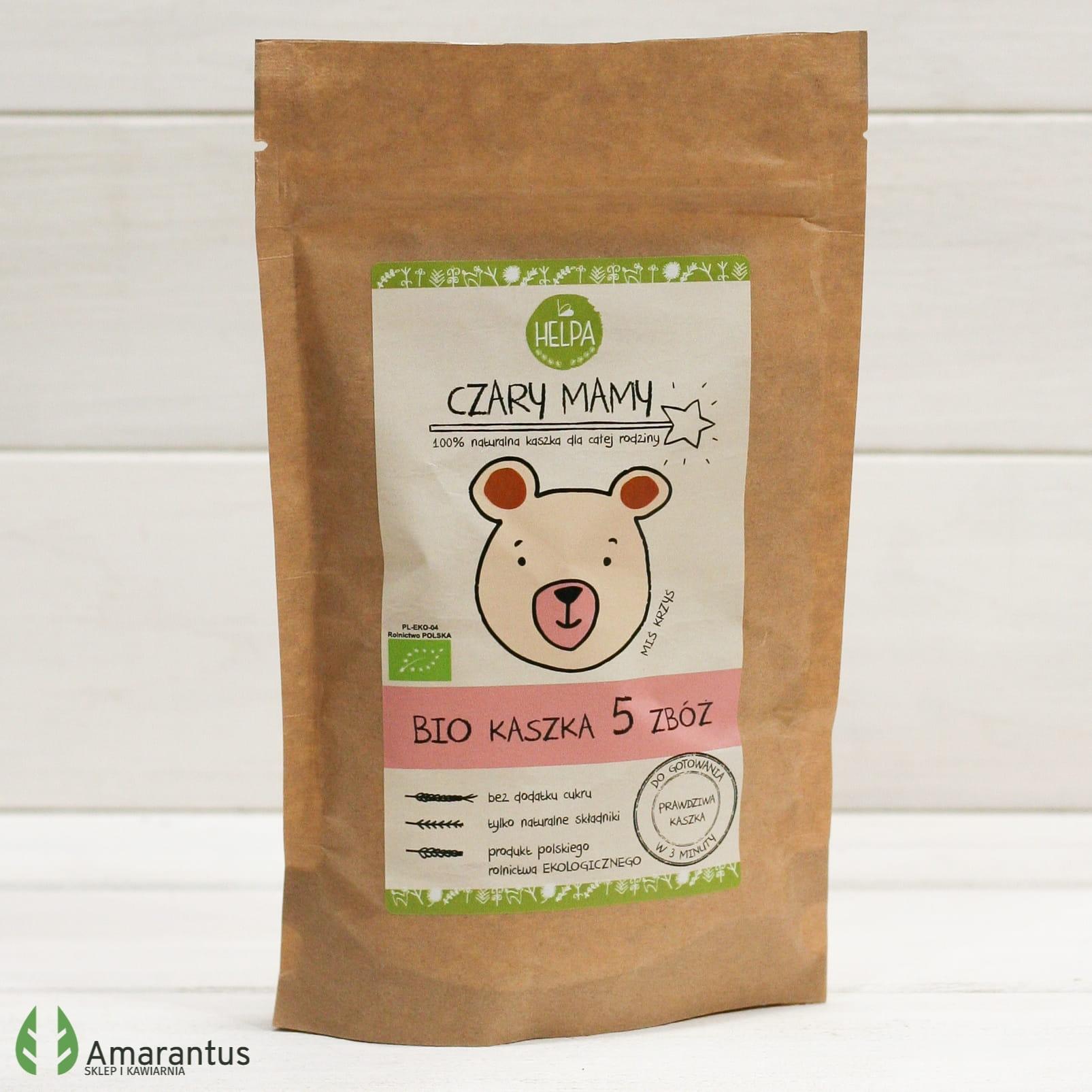 Kaszka 5 zbóż BIO od CZARY MAMY to kaszka, którą należy chwilę gotować. Produkt bez dodatku cukru. Zawiera naturalnie występujące cukry. Opakowanie zawiera 10 sugerowanych porcji.